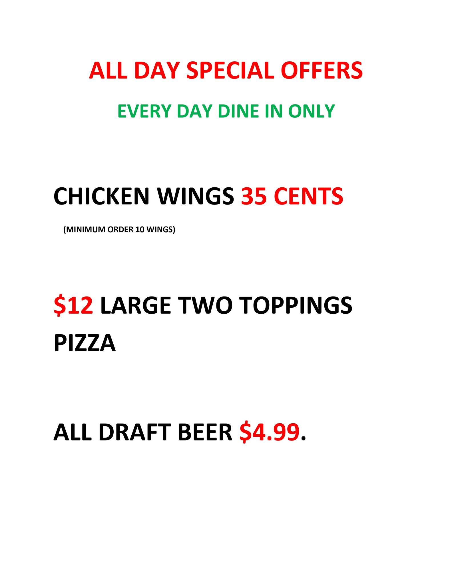 COME AND CHECK OUT OUR NEW EVERY DAY AND ALL DAY DEALS. PRICES AND DEALS ARE SUBJECT TO CHANGE ANY TIME